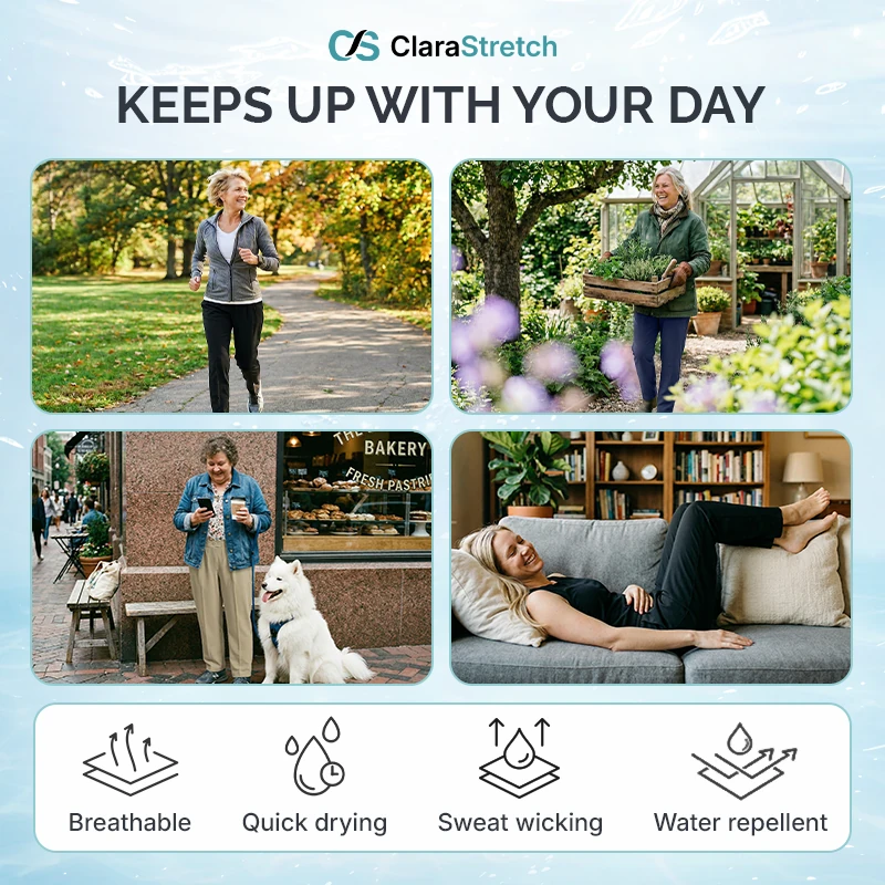 ClaraStretch lets the heat out, so you stay breezy and cool. It’s that light, "forget-you’re-even-wearing-them" comfort you haven't felt in years.