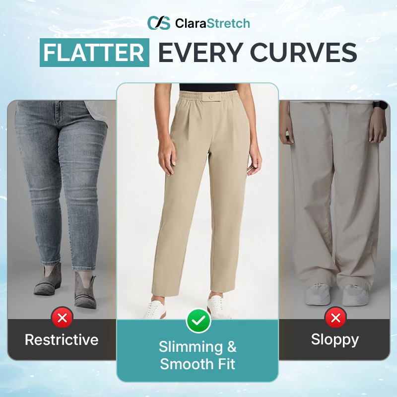 From your morning power walk to your afternoon coffee run, your pants should be the last thing on your mind. ClaraStretch handles the "now" with a breathable, life-proof fabric that never digs or pinches.