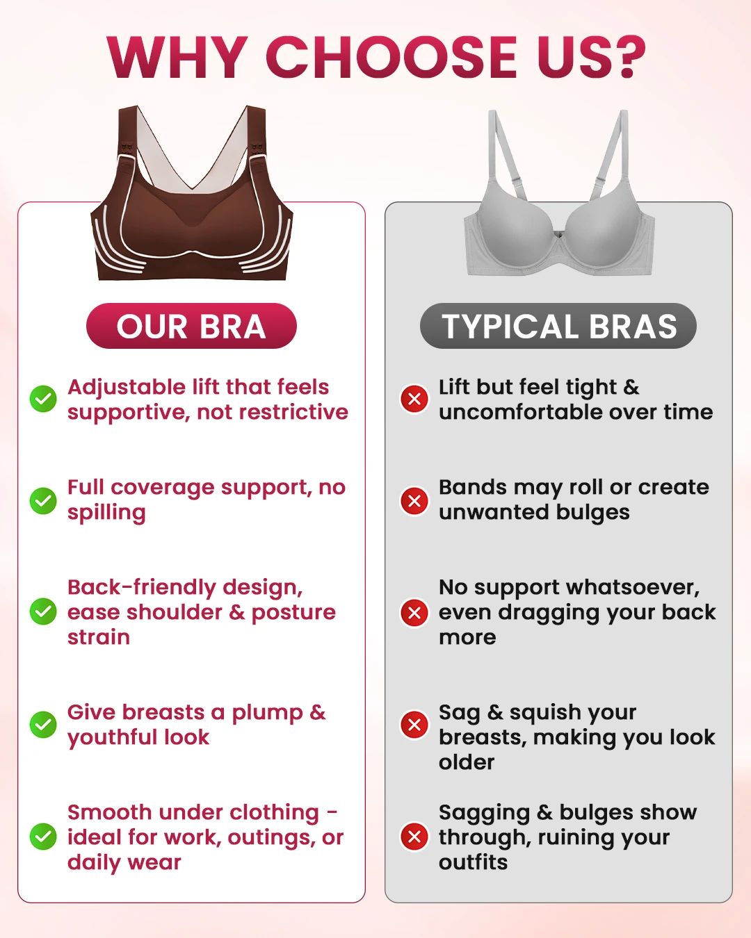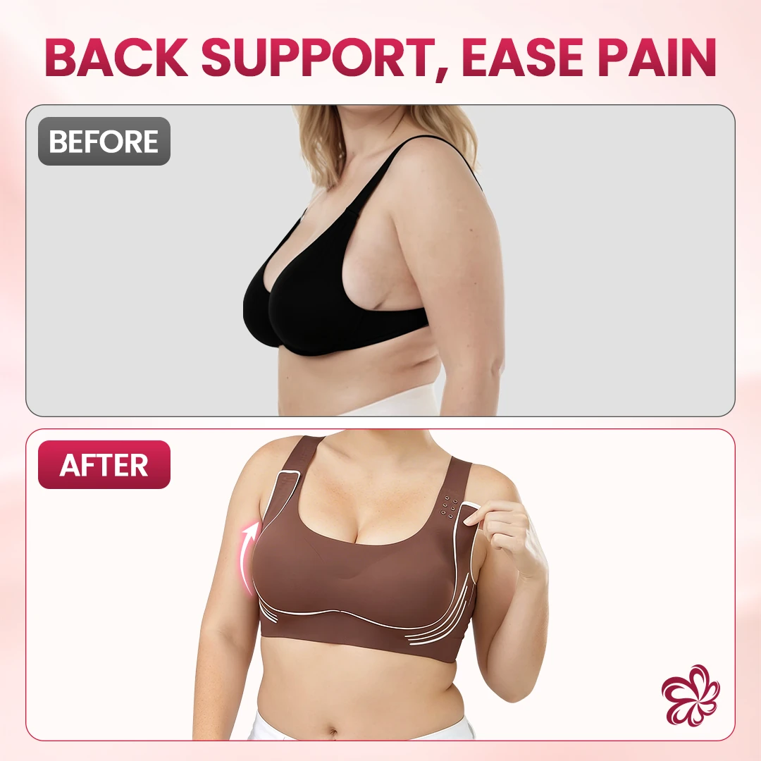 "Finally, a bra that helps me survive 8 hours at work and 2 hours driving every day. I always look presentable and free of back strain after long shifts. A true game-changer for me!" (Gloria, Teacher, 48, TX)